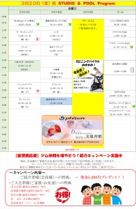 2026年3月20日(祝日) スタジオ・プール レッスンスケジュール